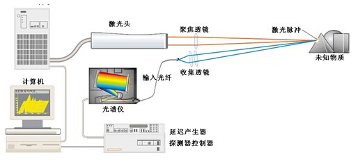 激光誘導(dǎo)等離子光譜(LIPS)或者更常見的叫法激光誘導(dǎo)擊穿光譜(LIBS)是一種原子發(fā)射光譜,它使用脈沖激光器作為激發(fā)源。激光脈沖(典型值10 ns)聚焦到被測物體的表面,使被測材料表面的激光功率密度超過1 GW/cm2。在如此之高的激光功率密度作用下,被測材料表面就會有幾微克的物質(zhì)被噴射出來同時材料表面還會產(chǎn)生壽命很短但亮度很高的等離子體,其瞬間溫度可達10,000 攝氏度 。冷卻過程中,處于激發(fā)態(tài)的原子和離子從高能態(tài)躍遷到低能態(tài),并發(fā)射出具有特定波長的光輻射。探測系統(tǒng)可以使用高靈敏度、高分辨率、多通道光纖光譜儀AvaSpec-2048-X進行測量,每個通道均有2048像素線陣CCD探測器。采集到的200-1050 nm寬光譜數(shù)據(jù)傳送給應(yīng)用軟件進行分析。