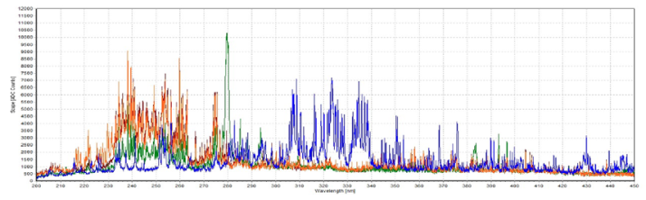 下圖顯示的是每個(gè)樣品在Sd模式下的LIBS光譜。 圖3:H5普通球粒隕石樣品的LIBS光譜 圖4: 鎳鐵隕石樣品的LIBS光譜 圖5:氧化鐵樣品的LIBS光譜 圖6:二氧化鈦樣品的LIBS光譜 圖7: 鎳鐵隕石(橙色)和氧化鐵(紅色)樣品的的LIBS光譜對(duì)比圖 圖8:H5普通球粒隕石(綠色)、鎳鐵隕石(橙色)、氧化鐵(紅色)和二氧化鈦(藍(lán)色)樣品的LIBS光譜對(duì)比圖
