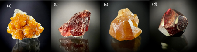 我們分析了來自多個(gè)產(chǎn)地的石榴石樣品,發(fā)現(xiàn)不同產(chǎn)地的石榴石具有明顯差異。為什么來自巴基斯坦的樣品在近紅外中的吸收比其他樣品低?為什么來自巴西的樣品是深紅色,而另外兩顆看起來更像琥珀色?是什么導(dǎo)致了三者的拉曼光譜有些許不同?為此,我們測量了其他種類石榴石的拉曼光譜,并利用LIBS分析不同石榴石之間的原子結(jié)構(gòu)差異。