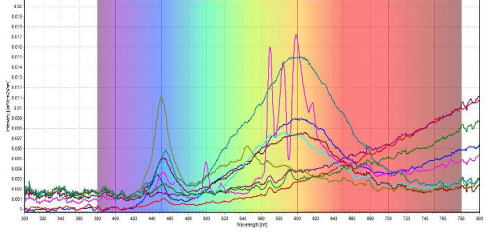 圖5:9個圣誕彩燈樣品的輻照度光譜