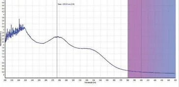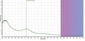 PART02 實(shí)驗(yàn)結(jié)果 圖3:普通咖啡樣品的吸光度光譜 (咖啡因吸光度峰在276.03 nm處) 圖4:低因咖啡樣品的吸光度光譜 (無(wú)咖啡因吸光度峰存在) 圖5:含咖啡因果汁樣品的吸光度光譜 (咖啡因吸光度峰在273.50 nm處) 正如預(yù)期的那樣,普通咖啡和含咖啡因的果汁都在紫外區(qū)域出現(xiàn)了吸光度峰,并與文獻(xiàn)資料中的咖啡因吸光度峰(約273 nm)相匹配。普通咖啡樣品在276.03 nm處出現(xiàn)吸光度峰(圖3)。低因咖啡樣品沒(méi)有顯示出咖啡因?qū)?yīng)的吸光度峰,而是在290-320 nm處出現(xiàn)淺峰 (圖4)。含咖啡因的果汁樣品也在273.50 nm處出現(xiàn)吸光度峰(圖5)。 圖6:普通咖啡(藍(lán)色)低因咖啡(紅色) 含咖啡因果汁(綠色)的吸光度光譜圖 結(jié)果分析 所有樣品的吸光度光譜如圖6所示。 比較三個(gè)樣品,很明顯,普通咖啡樣品和含咖啡因的果汁樣品都出現(xiàn)了咖啡因?qū)?yīng)的吸光度峰。有趣的是,果汁宣傳自己的咖啡因含量(每8盎司80毫克)幾乎與普通咖啡(每8盎司90毫克)一樣多,但普通咖啡樣品的吸光度值明顯高于含咖啡因的果汁樣品。另外,普通咖啡樣品中吸光度峰位于波長(zhǎng)276.03 nm,略大于資料所給出的約273nm的咖啡因吸光度峰。 PART03 總結(jié) 本實(shí)驗(yàn)利用紫外吸收光譜法分別檢測(cè)了普通咖啡,低因咖啡和含咖啡因果汁樣品中的咖啡因。通過(guò)對(duì)比普通咖啡和低因咖啡的吸光度光譜可以發(fā)現(xiàn)低因咖啡不含紫外區(qū)域范圍內(nèi)可檢測(cè)的咖啡因,這一結(jié)果與事實(shí)相吻合。