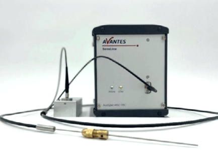 圖1:實驗系統(tǒng) AvaSpec-HERO光譜儀、AvaLight-XE高功率脈沖氙燈和可變光程浸入式探頭 實驗中,我們使用了Avantes公司的科研級紫外/可見光譜儀AvaSpec-HERO(圖1)。AvaSpec-HERO光譜儀基于高靈敏度緊湊型光學平臺(焦距=100mm,數(shù)值孔徑=0.13)以及一塊1024×58 像素的背照式CCD 探測器,它擁有很高靈敏度和分辨率。AvaSpec-HERO采用先進的AS7010電路板,它包括一個高性能AD轉換器,具有高信噪比和動態(tài)范圍,USB3.0和以太網(wǎng)接口可以實現(xiàn)高速通信。由于本實驗在紫外范圍內(nèi)需要較高的靈敏度,所以我們使用了這種光譜儀。 光源采用脈沖氙燈AvaLight-XE-HP,它在極紫外區(qū)域有非常好的表現(xiàn),并通過一根Y型觸發(fā)線與光譜儀連接。它接收到光譜儀的TTL信號后開始工作,以確保僅在光源工作時測量光譜。每次測量的閃光次數(shù)可以在AvaSoft軟件中設置,以避免光譜飽和(當過量的光進入光譜儀時會產(chǎn)生飽和現(xiàn)象)。我們在10mm光程長度實驗中將閃光次數(shù)設置為3次,在5mm光程長度實驗中將閃光次數(shù)設置為2次。 圖2 :光程長度為10mm時的可變光程浸入式探頭 實驗系統(tǒng)中的最后一個組件是Avantes公司的可變光程浸入式探頭。Avantes公司為科研及工業(yè)客戶提供了固定或可變光程長度的浸入式探頭 (圖2),光程長度的改變可以通過銅管件的旋松并擰緊實現(xiàn)的。較長的光程長度適用于測量低濃度樣品,較短的光程長度適用于測量高濃度樣品。這是因為更長的距離允許更多的光進入樣品,光程長度為10mm的探頭比5mm長度更適用于較低濃度的樣品。