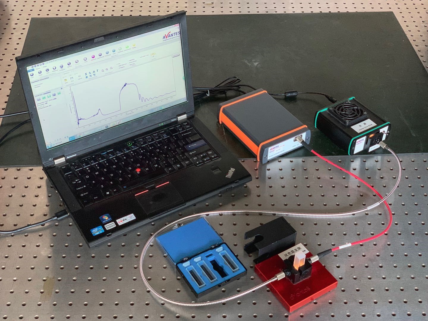 光源透過電解池,然后光譜儀檢測由電化學(xué)行為引起的電解池中物質(zhì)變化引起的光譜變化,從而研究反應(yīng)的變化,中間體以及最終產(chǎn)物。